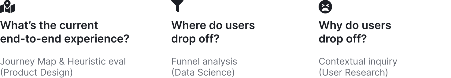 First, we defined a vision of how a customer would onboard and continuously discover values. This vision is intentionally vague, as it needs to be informed by experiment results.